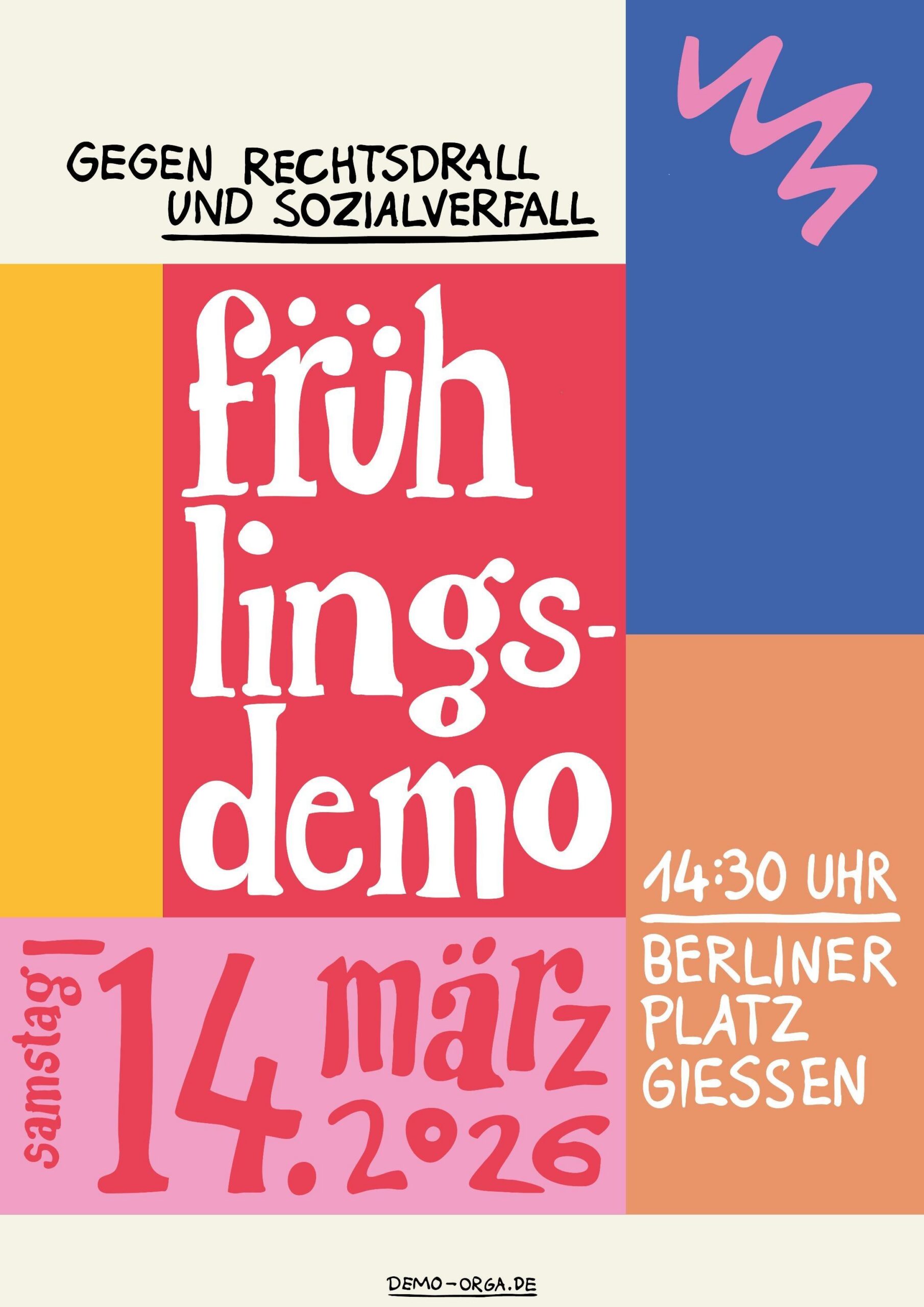 Am 14. März 2026, einen Tag vor der hessischen Kommunalwahl gehen wir in Gießen auf die Straße.
